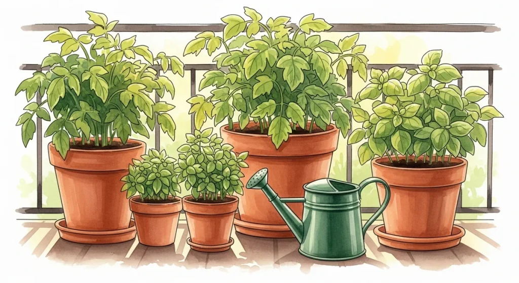 種からではなく、苗から始めるのが失敗しづらいです。ミニトマトとバジルは丈夫で、水やりくらいの世話で実や葉が採れます。